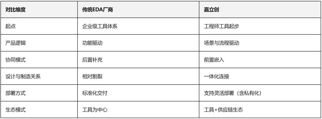 此外,其数百万级用户基础与产学研生态,也在影响工具扩散路径。EDA不再仅通过企业采购进入,而是通过工程师个人使用逐步渗透到企业内部,降低了人才培训成本,并强化了工具的基础设施属性。综合来看,嘉立创不仅是提供一款EDA软件,而是在重新定义EDA在产业链中的位置——从设计工具,走向连接研发、供应链与制造的基础设施。这也意味着,其竞争对象已不再局限于传统EDA厂商,而扩展至研发管理系统、供应链平台乃至制造服务体系。