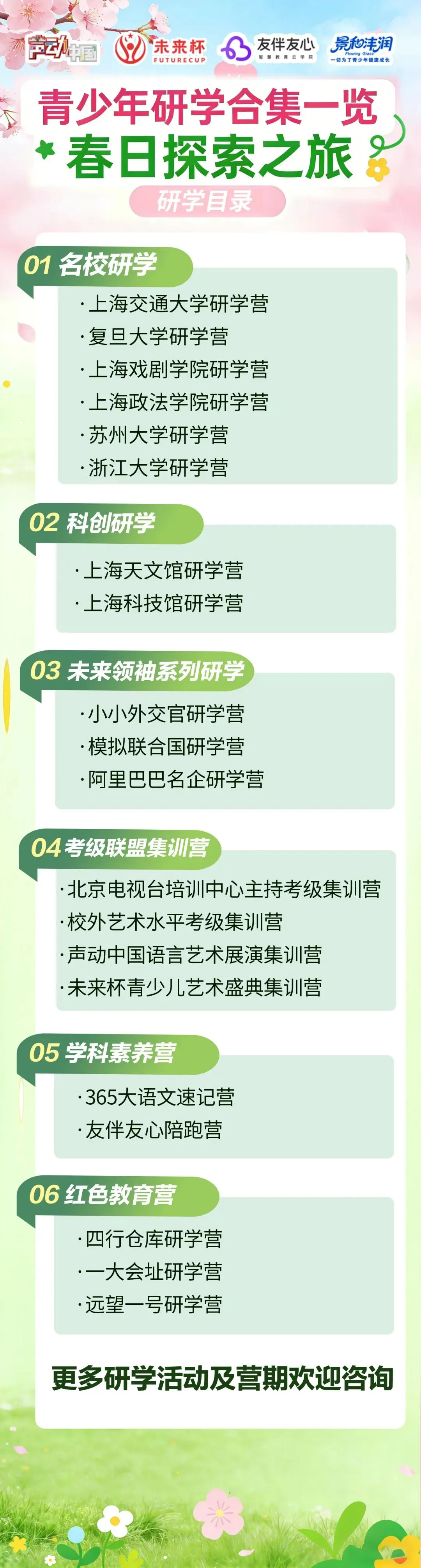 📌 更多研学活动详情、营期安排及报名方式,欢迎随时咨询!让我们抓住春日好时光,陪孩子一起奔赴山海,在研学中遇见更好的自己!