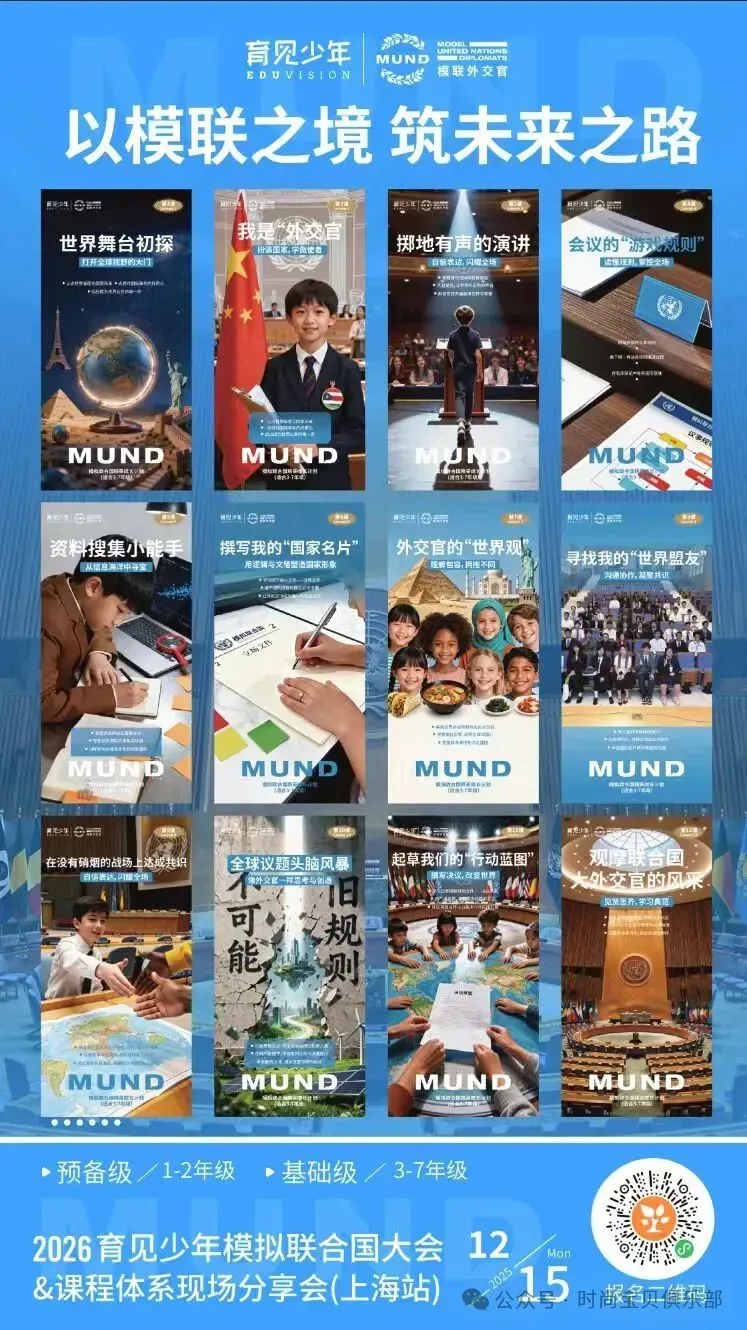 想要成为未来领袖,不仅需要知识储备,更需具备沟通、协作与国际视野。系列研学营包含小小外交官、模拟联合国、阿里巴巴名企三大主题: