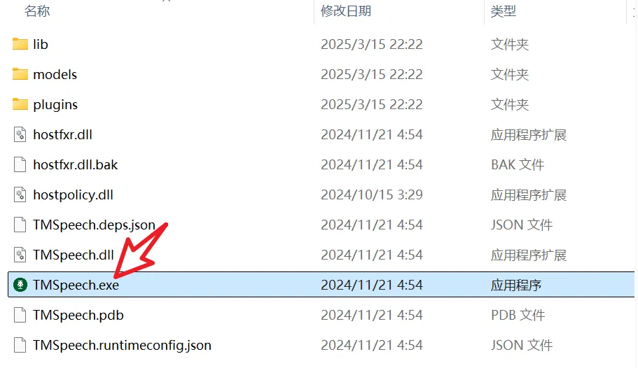 这个软件使用起来也是很简单的,解压完安装包后,进入文件夹,直接双击“TMSpeech.exe”即可,这样子这个软件就被打开啦。