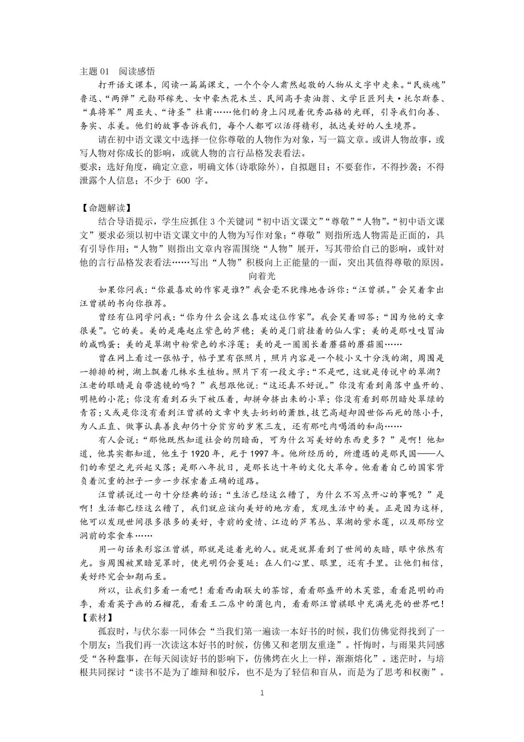 3月25日精选《主题作文》电子版可打印