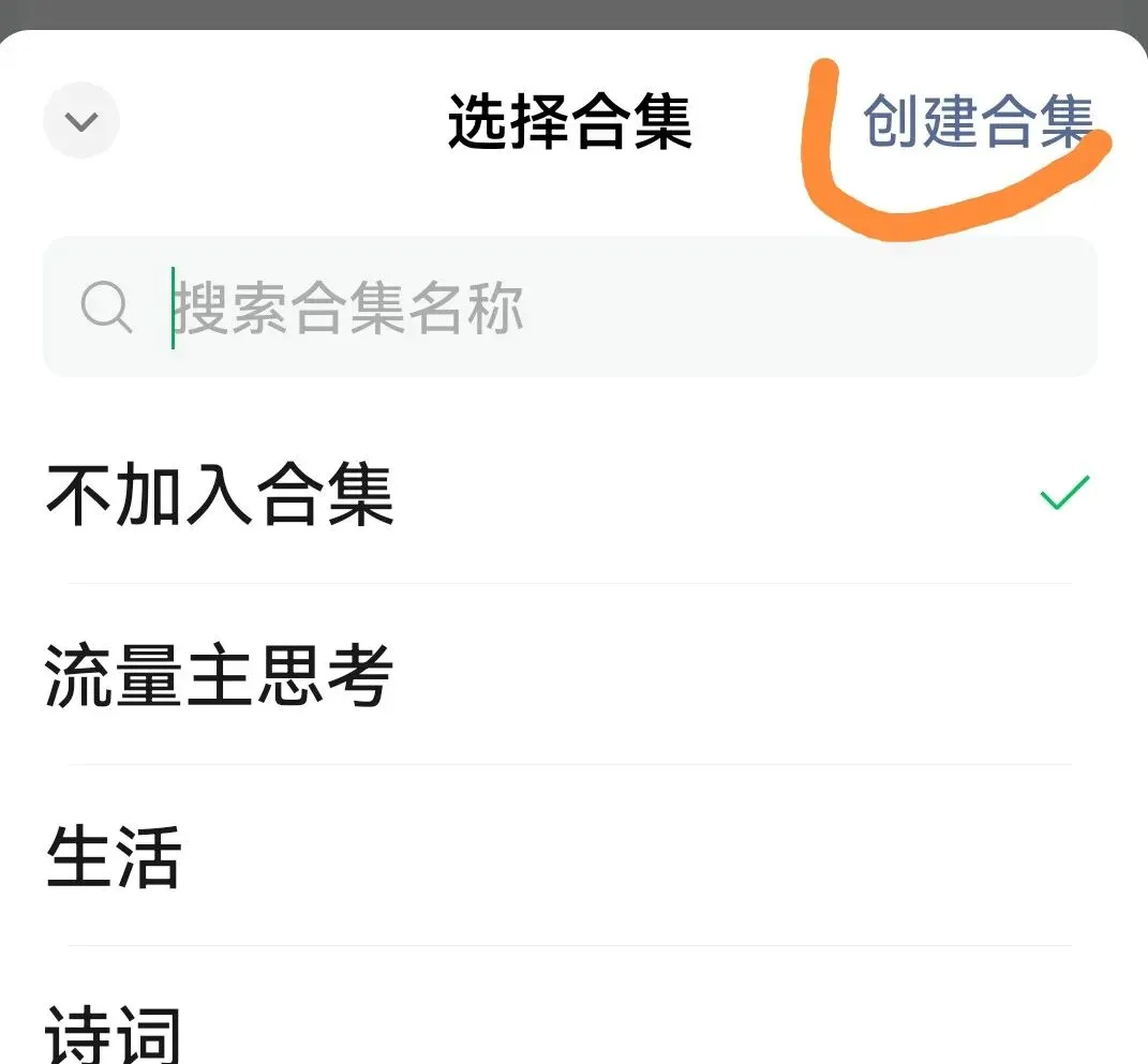 如果有现成的就选择合集,如果没有就选创建合集