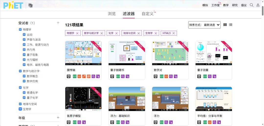 PhET互动模拟(https://phet.colorado.edu/zh_CN/)