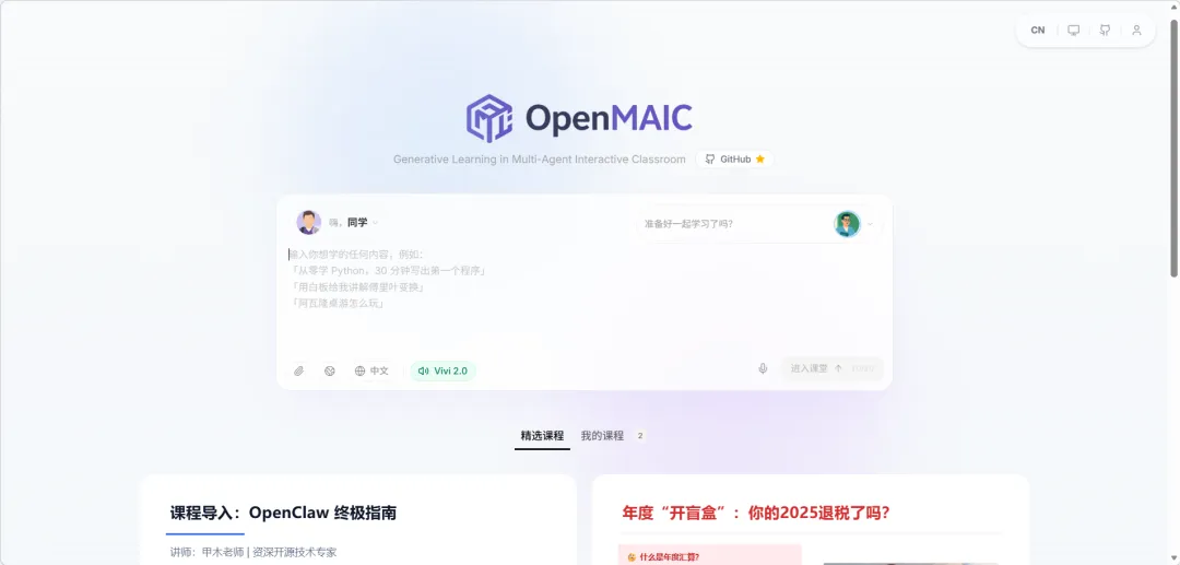 OpenMAIC是由清华团队开发的开源多智能体AI课堂平台。