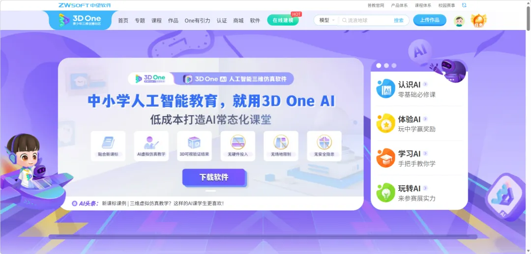3D One AI是专为8-18岁青少年研发的人工智能三维仿真软件。