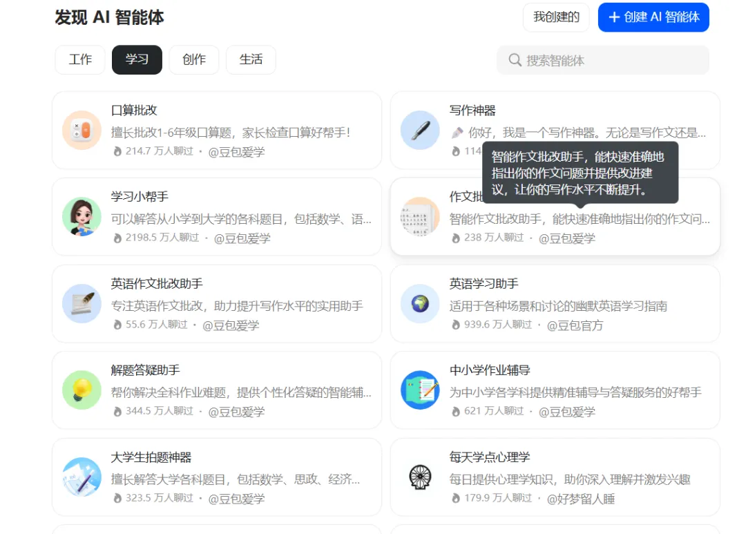 豆包是一款支持教师与学生零代码搭建专属“AI智能体” 的对话探究工具。