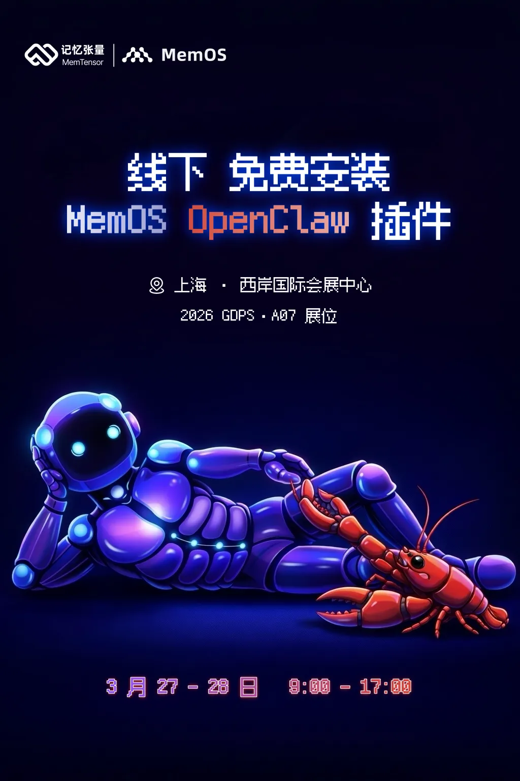 为了回馈大家的支持,我们将在 GDPS 大会展位来展线下免费安装 MemOS OpenClaw 插件活动!只需要带上您的 OpenClaw,