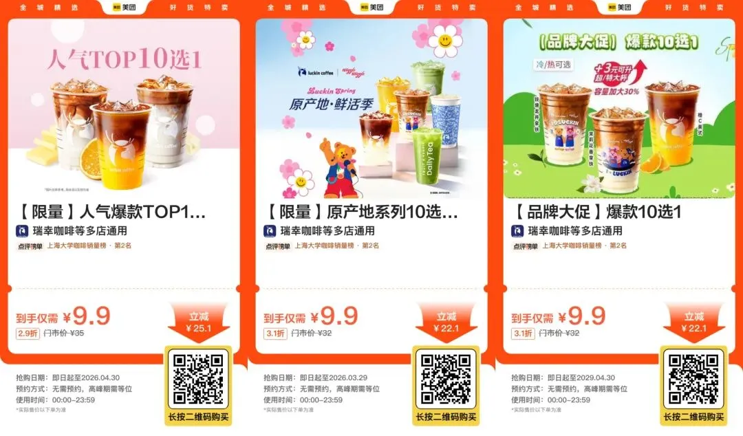 2,【到店】瑞幸生椰拿铁等12选1 9.9元