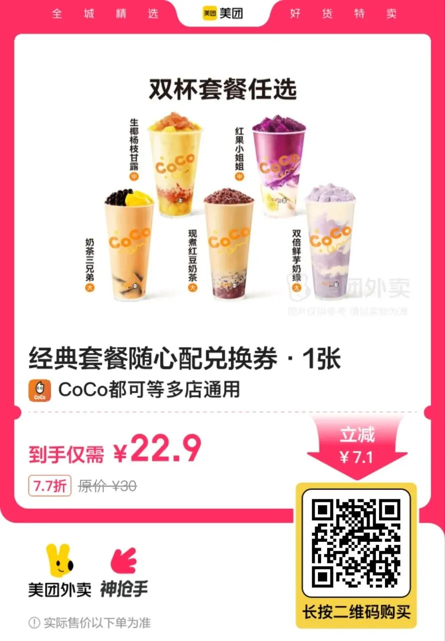 11,【美团外卖】CoCo经典套餐5选2 22.9元