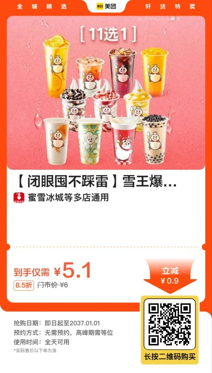 12,【到店】蜜雪冰城圣代、奶茶11选1 6元