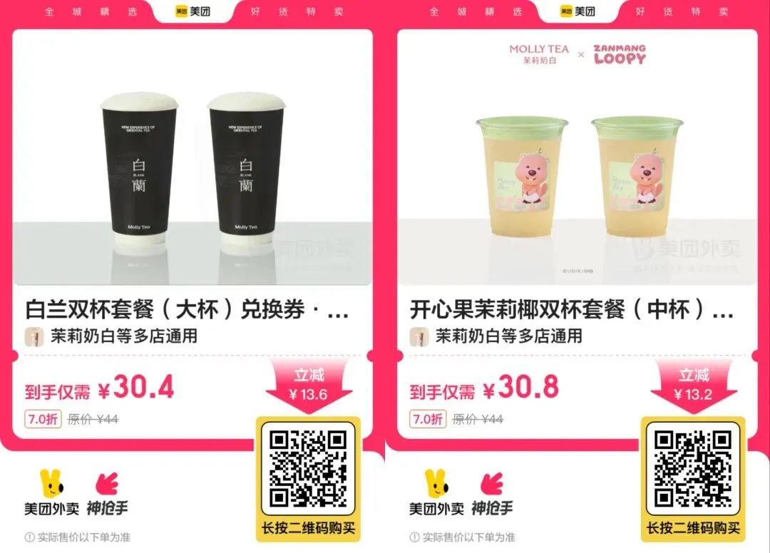 14,【美团外卖】茉莉奶白双杯套餐 37.1元