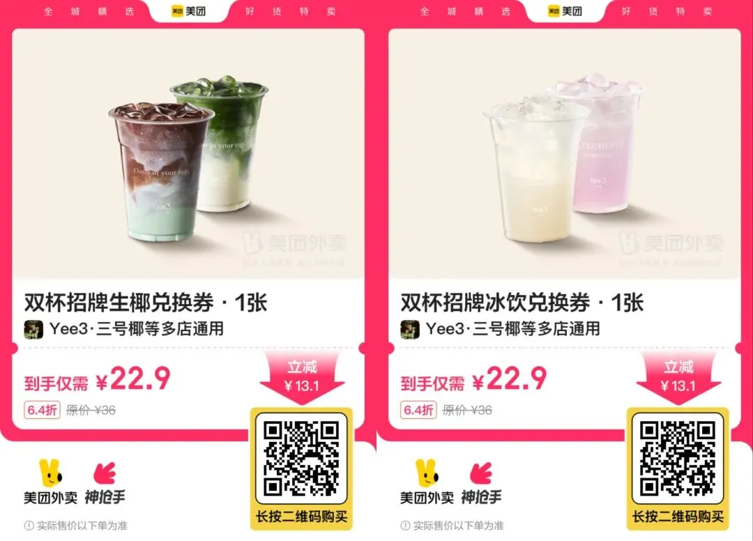 15,【美团外卖】Yee3*三号椰双杯 22.9元