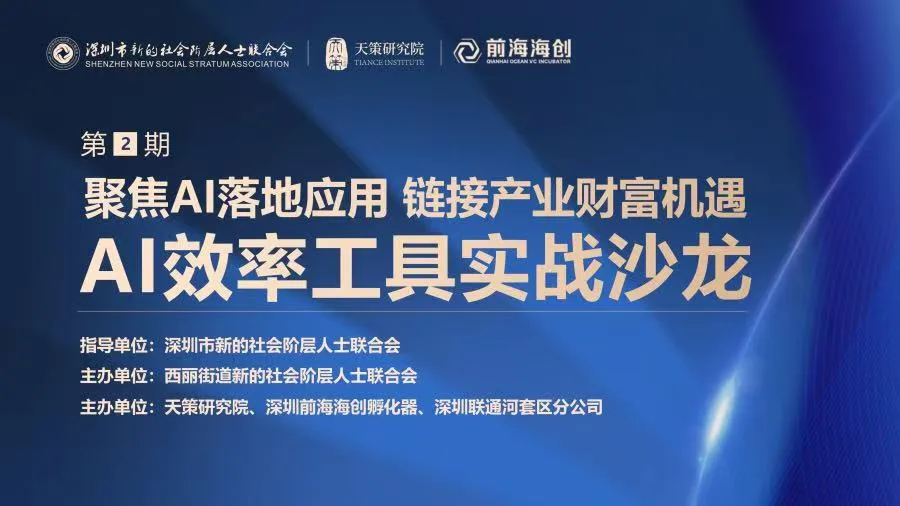 2026年3月25日,由天策研究院承办、西丽街道新的社会阶层人士联合会主办,深圳前海海创孵化器有限公司、深圳联通河套区分公司协办,深圳市新的社会阶层人士联合会指导的“龙虾财富局”第二期——AI效率工具实战沙龙在深圳国际创新谷圆满举办。本次活动以“聚焦AI落地应用 链接产业财富机遇”为主题,吸引来自人工智能、创投、企业服务、跨境出海等领域的60余位新的社会阶层代表人士齐聚一堂,共探AI技术落地路径,共享智能经济发展新机遇。