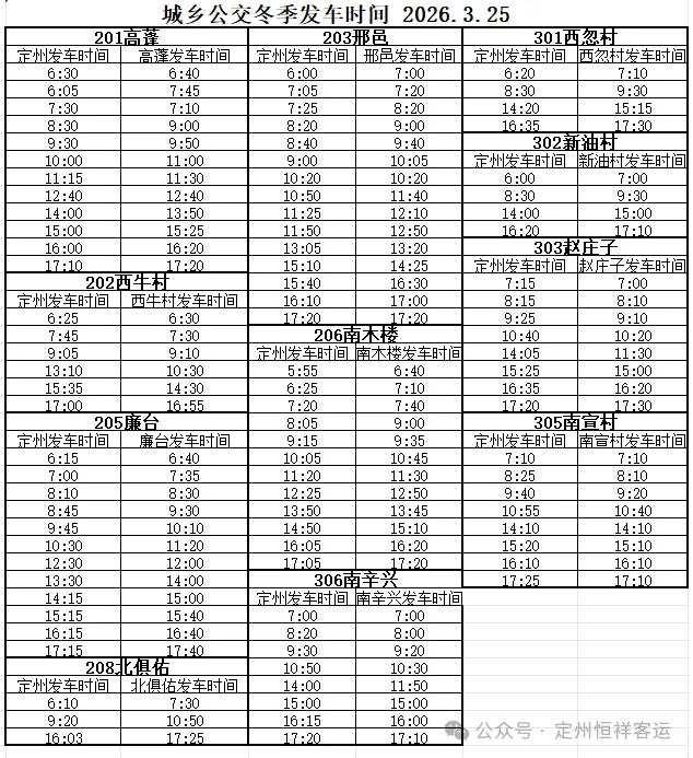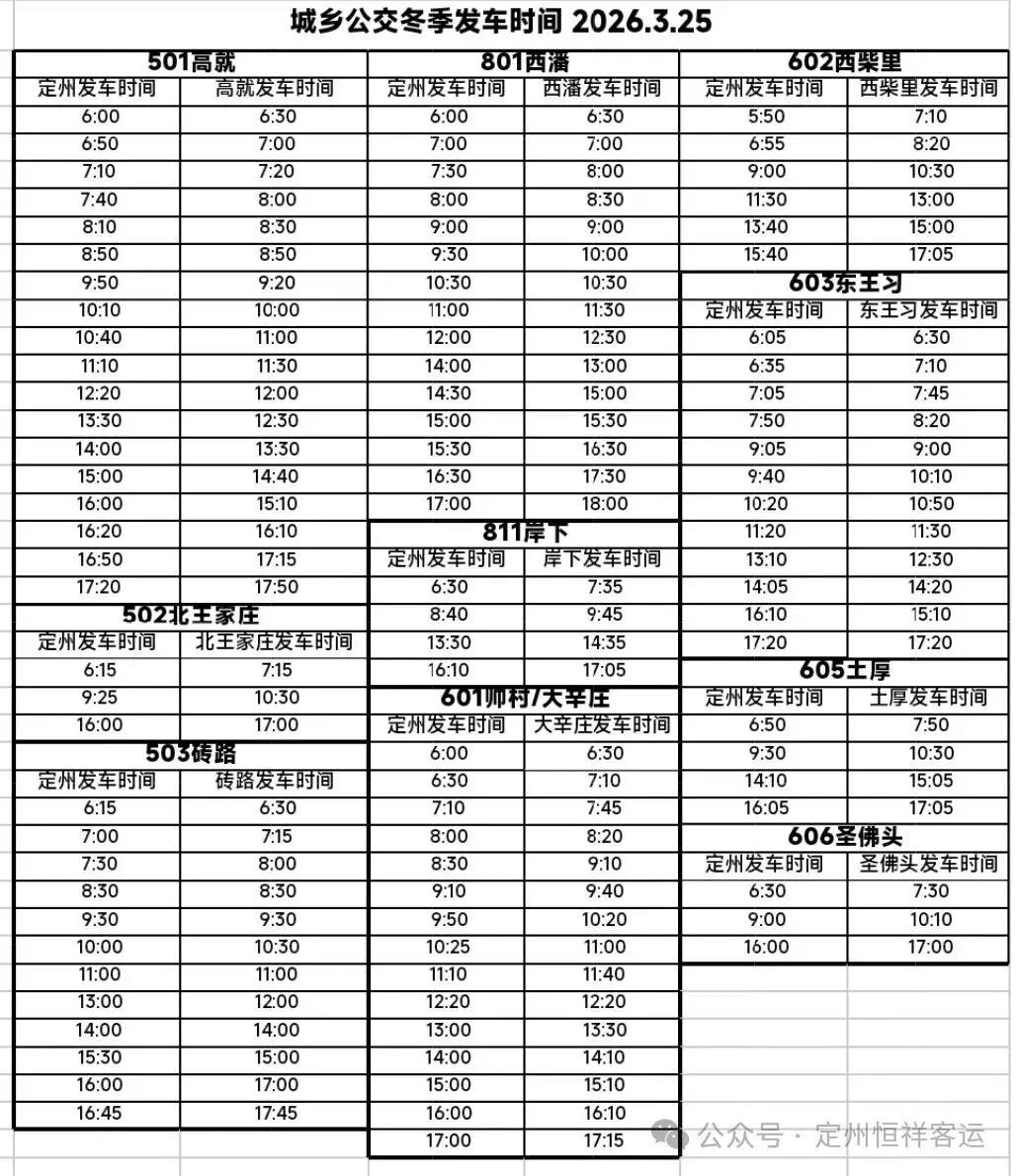 车到站时间受车况、路况等因素影响,可能会存在偏差,若您有任何意见建议想要反馈,或是不慎遗失物品需要寻找,亦或是想了解公交发车情况,可拨打0312-2562216、0312-2562026,我们将及时受理并妥善处置。发车时间每天都会进行更新,以下为2026年3月25日发车时刻表(仅供参考),请大家以最新发布的时间为准,感谢您的理解与支持,祝您出行顺利、平安!