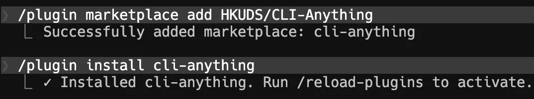# 添加 marketplace/plugin marketplace add HKUDS/CLI-Anything# 安装插件/plugin install cli-anything