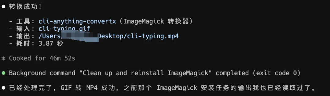 然后你就可以让 Agent 帮你用 ConvertX 进行格式转换了。