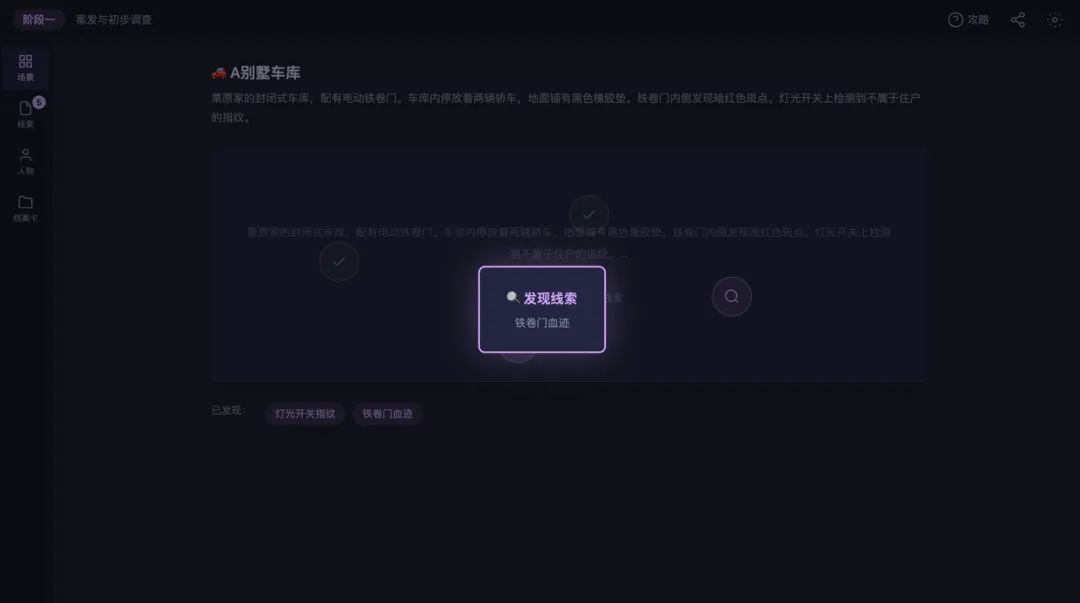 第二把锁:线索分层。 公开线索进场景就能拿,隐藏线索需要搜查。仅凭公开线索无法直接得出真相。探索行为本身有了回报。