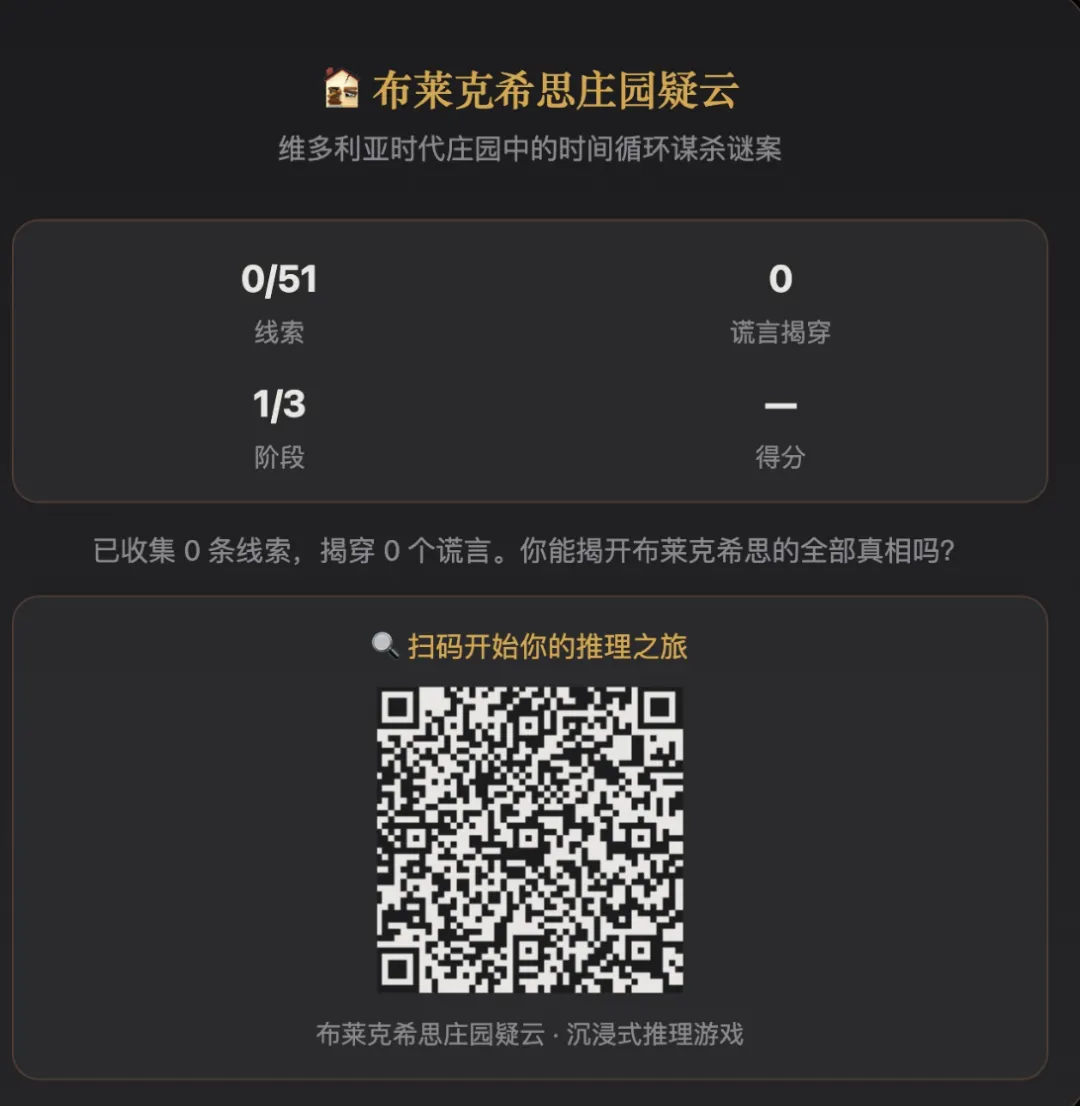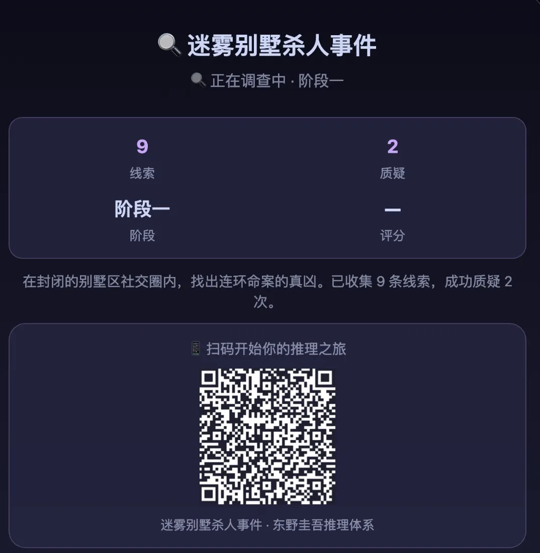 之前有篇文章拆过另一条路径——用江户川乱步的《诡计集成》821 条经典诡计做了一个”无限推理游戏”,AI 每局随机组合诡计,案件永远不重复。那是从”知识库”出发做游戏。
