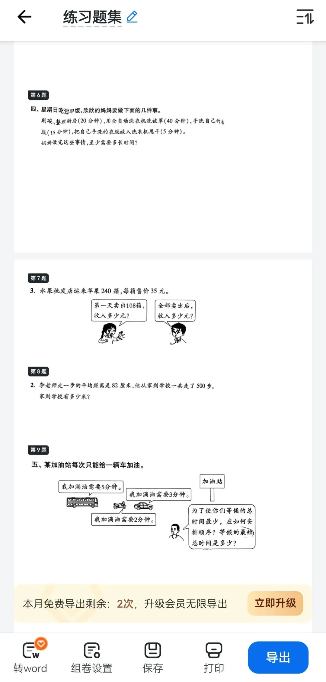 除此以外,还能分学科收集错题,收集的错题会按时间顺序排序。也可以自由选择错题,重新组卷,组卷完成后变成一个题集,非会员每月2次免费PDF导出机会,会员可以转word导出。如果不想买会员,也可以截屏保存,直接打印。