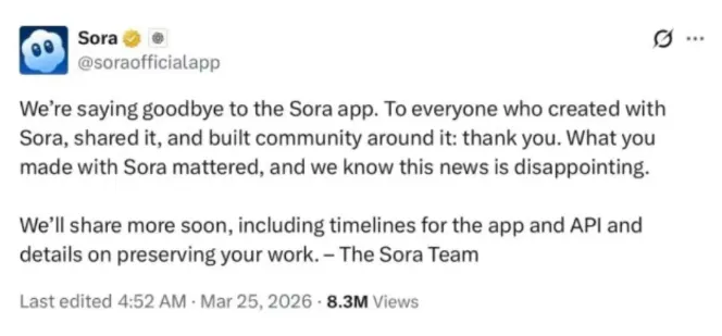 Sora最火的时候,一条演示视频能引爆全网。现在呢?关停公告里写着成本控制与战略调整。很体面,也很残酷。