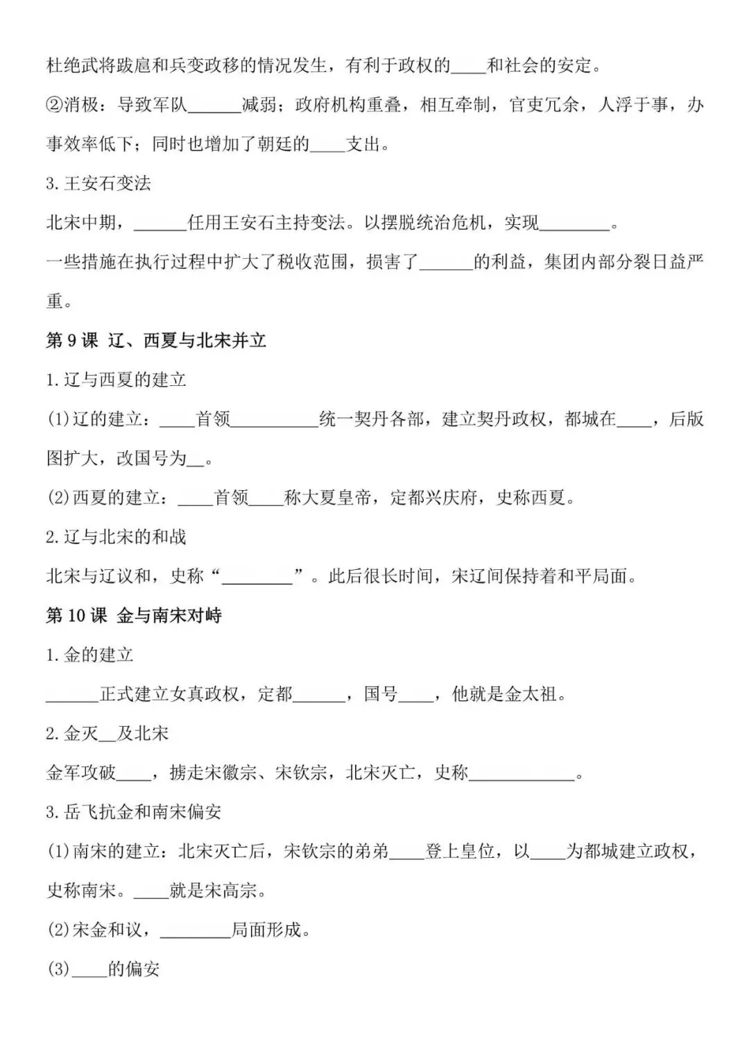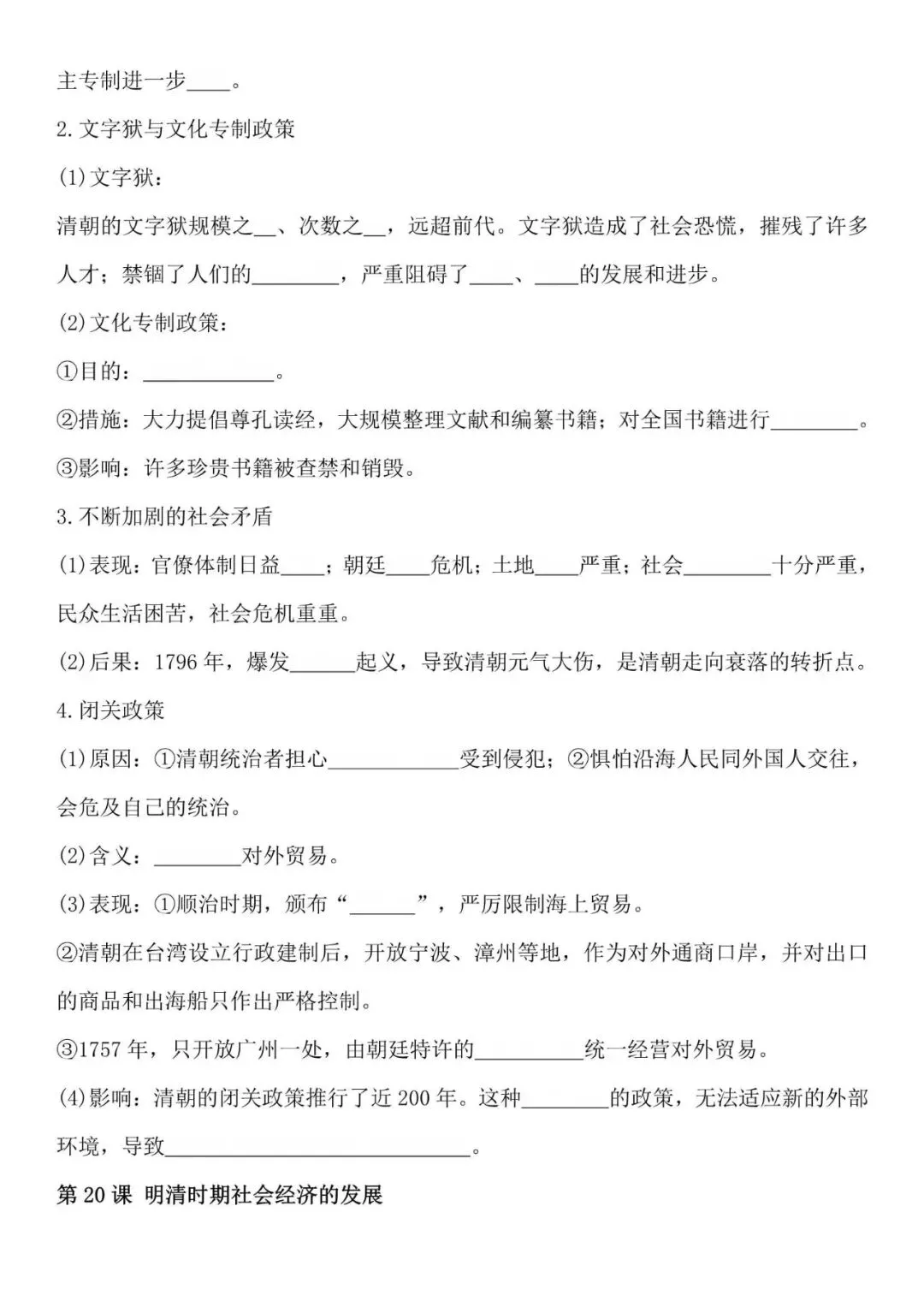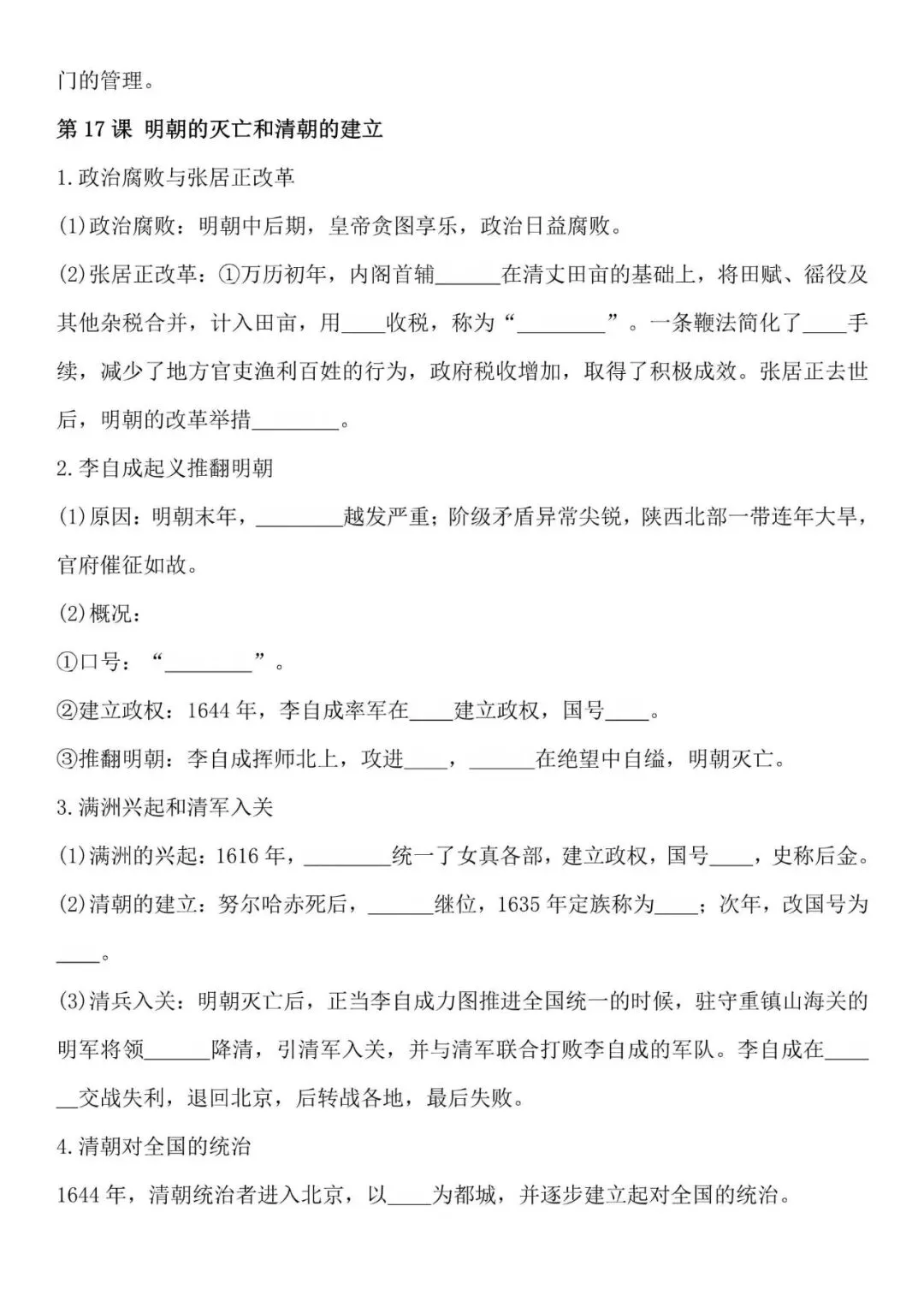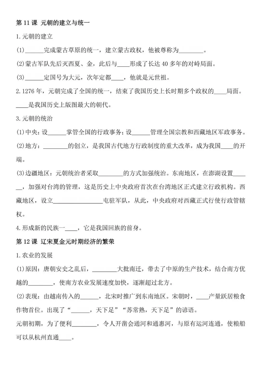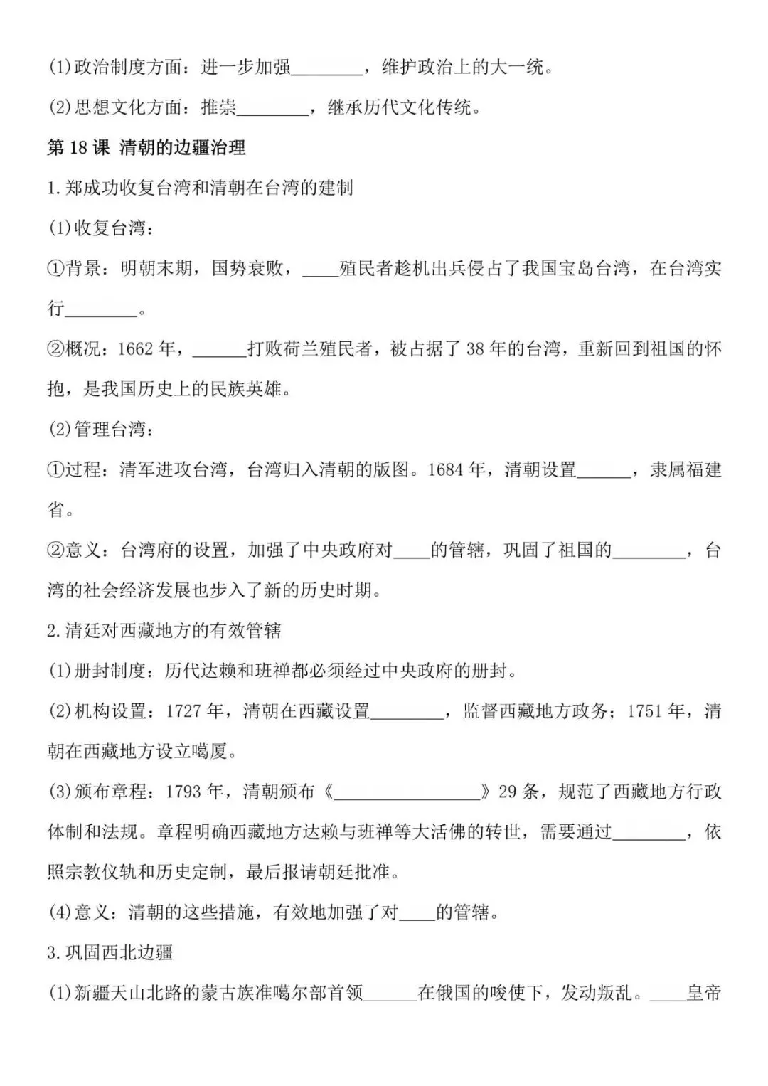 七年级下册历史必背知识点,默写填空版,电子打印版!