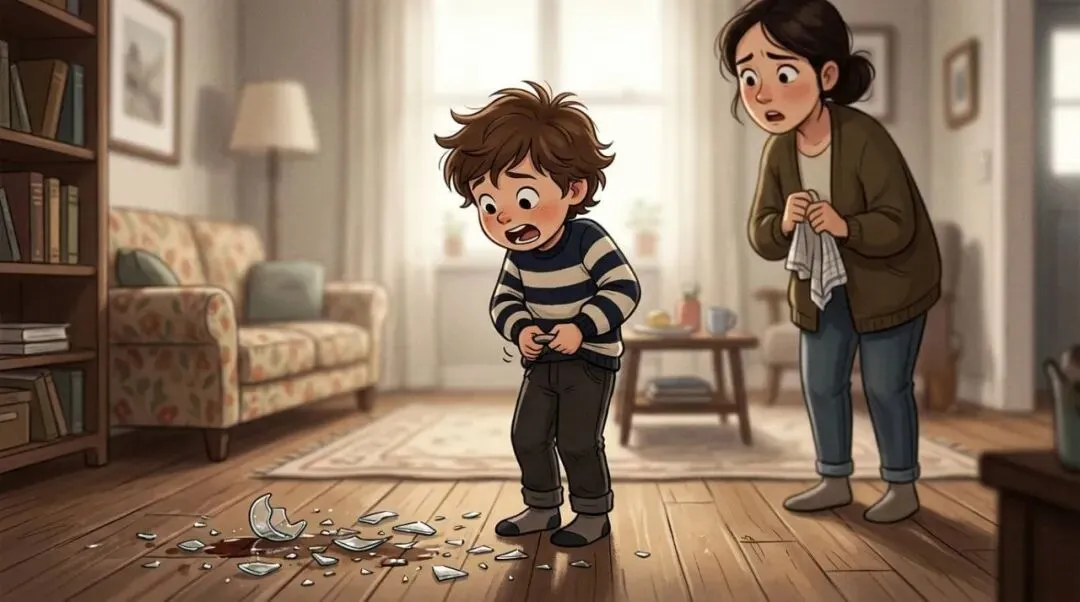 孩子把玻璃杯打碎了,你还没开口,孩子先僵住了,眼睛盯着地面,道歉的话一连串冒出来: