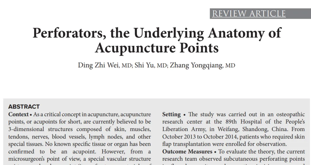这是当前的主流观点。真的,有中医大师给我说:我们早就认定穴位经络不存在了,你为什么还要研究。言下之意很有“我给他们惹麻烦”的抱怨,从那时候开始,我就知道,这些中医大师,不会认可皮穿支了。现在看确实如此。