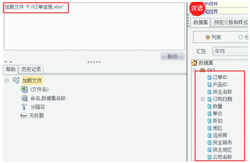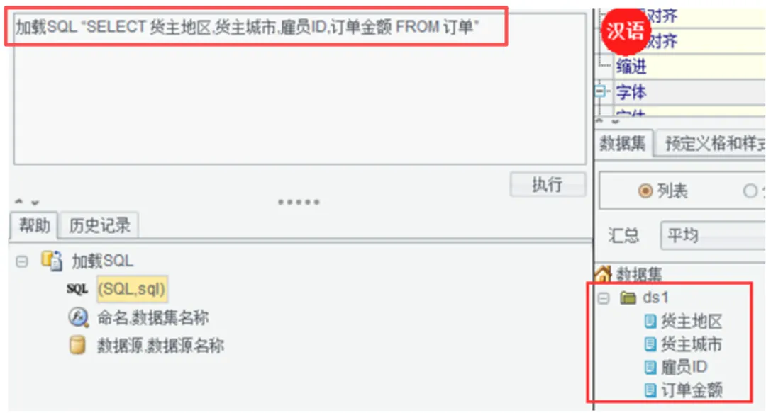 加载 SQL “SELECT 货主地区, 货主城市, 雇员 ID, 订单金额 FROM 订单”