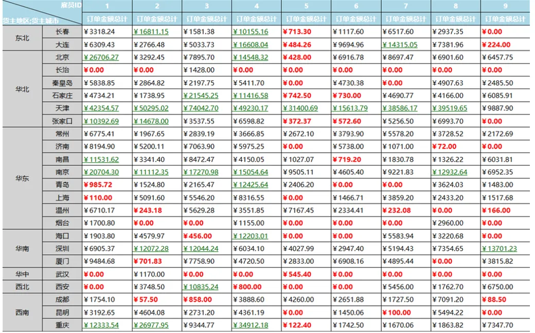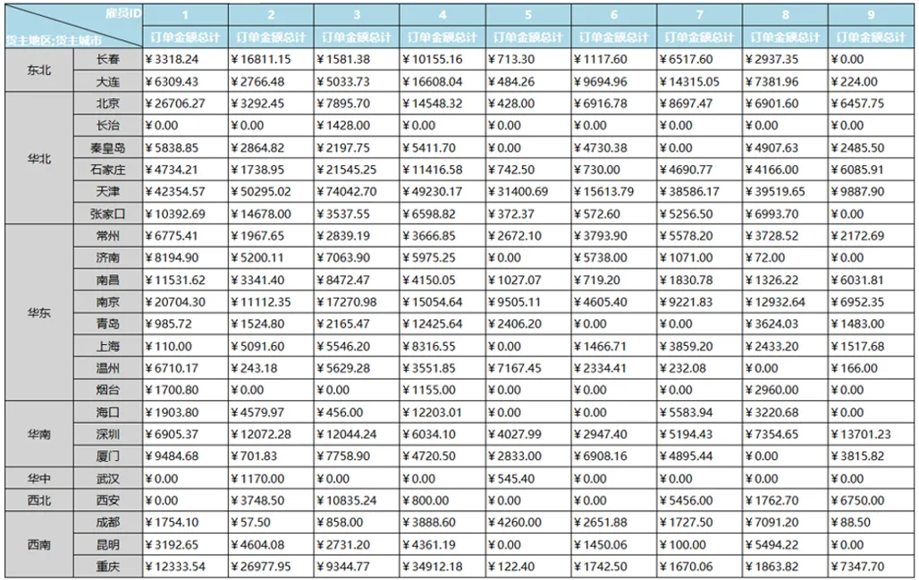生成报表 左表头 货主地区,货主城市 上表头 雇员 ID 交叉格 订单金额求和