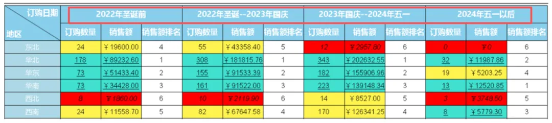 把订购日期的数据 按这三个时间节点 2022-12-25,2023-10-1,2024-5-1 分段显示