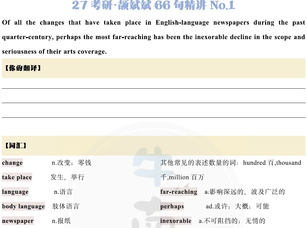 2027颉斌斌66句长难句笔记pdf 把长难句理解为和语法一样打基础的东西,长难句的分析达到一定数量对阅读快速抓住主干信息肯定是有好处的啦,然后颉斌斌老师在讲66句长难句的时候不是还会带着我们精译句子嘛,这对翻译题当然也是有帮助的啦 2027颉斌斌66句长难句笔记pdf: https://pan.quark.cn/s/ea9f2249b6a2 部分内容展示