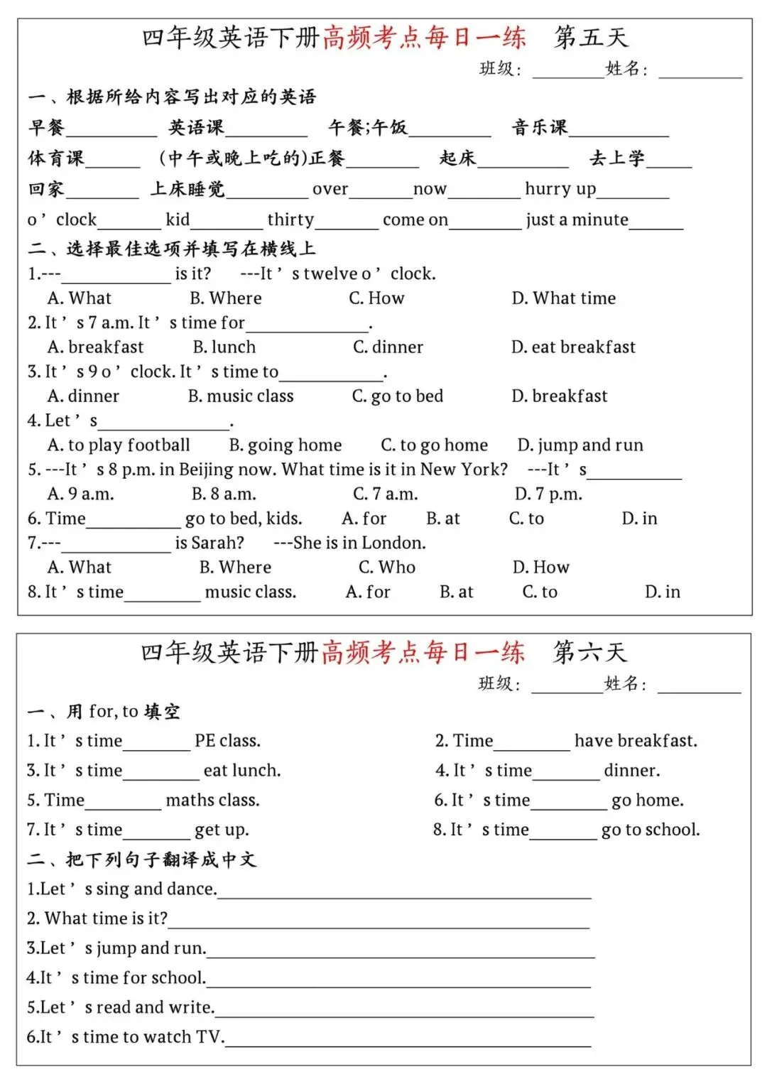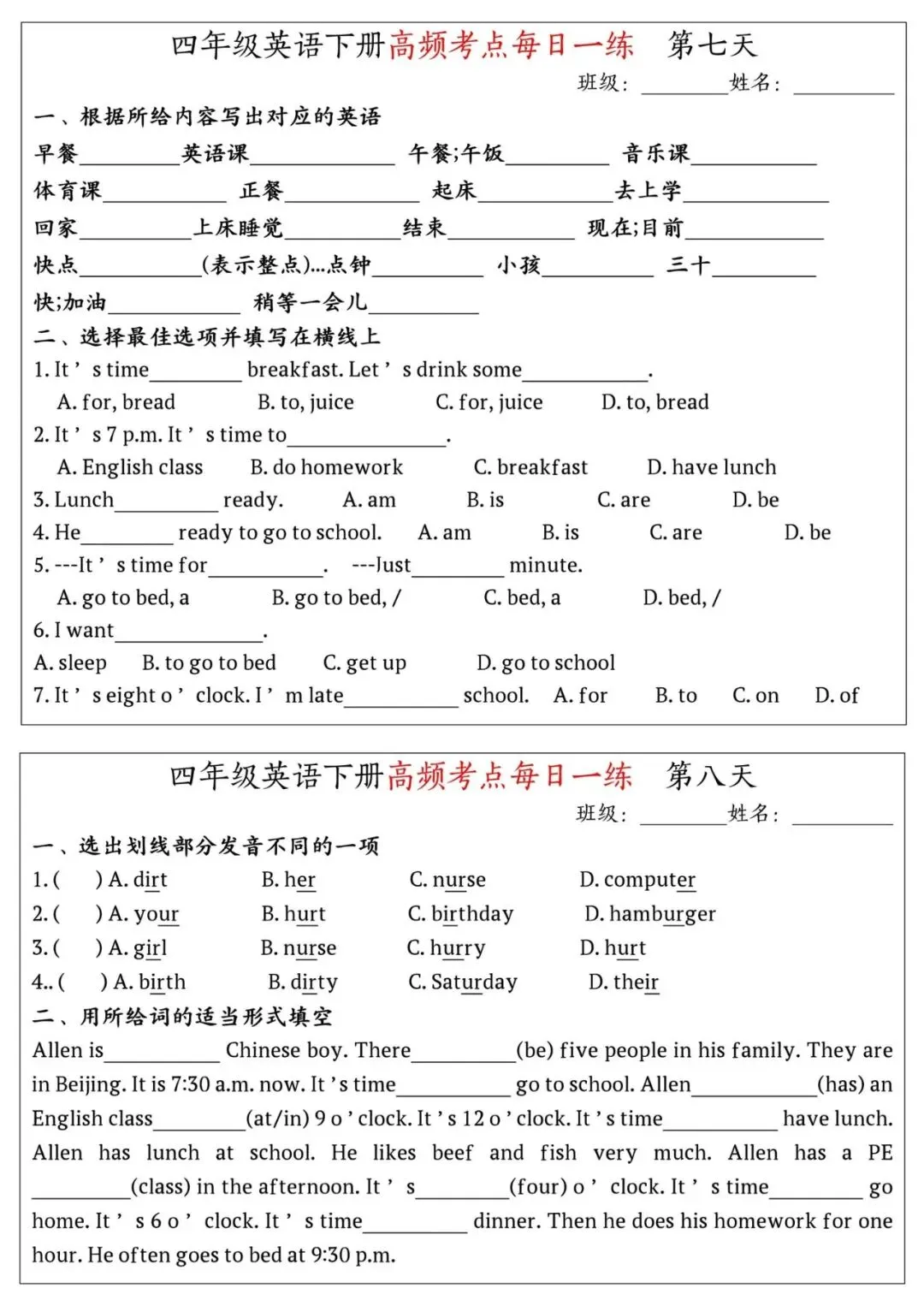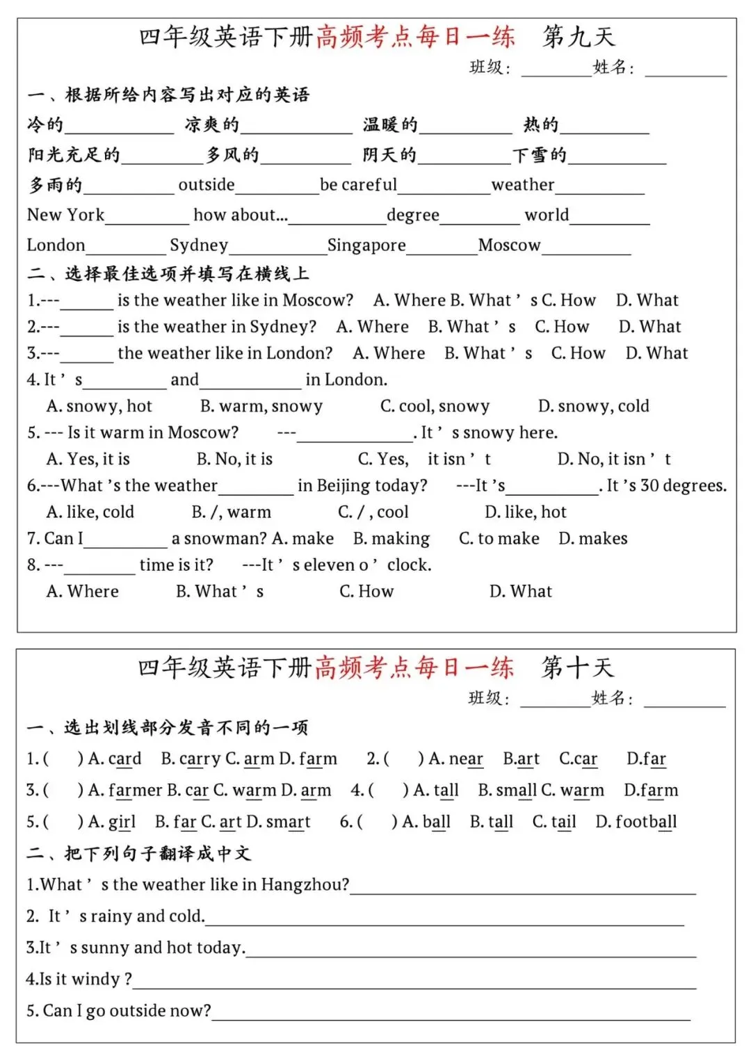 26春(人教pep版)四年级下册 英语《 高频率考点每日一练 》,完整可打印~
