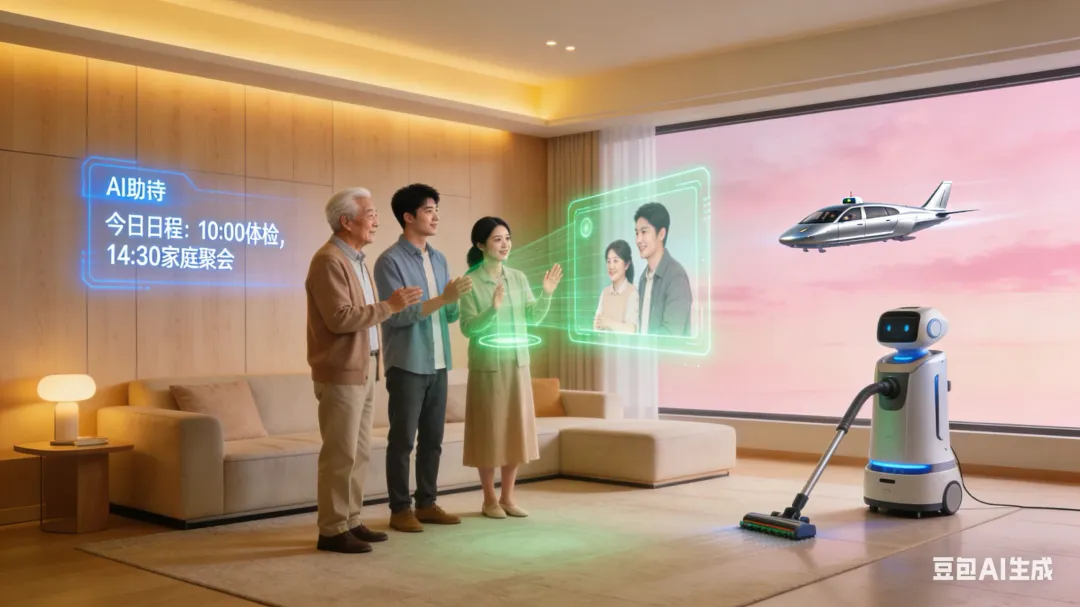 家里更不用费心打理:家政机器人会自动打扫卫生、洗衣做饭,智能床垫、手环24小时监测你的身体数据,一旦有异常,AI会第一时间提醒你,甚至帮你预约医生。