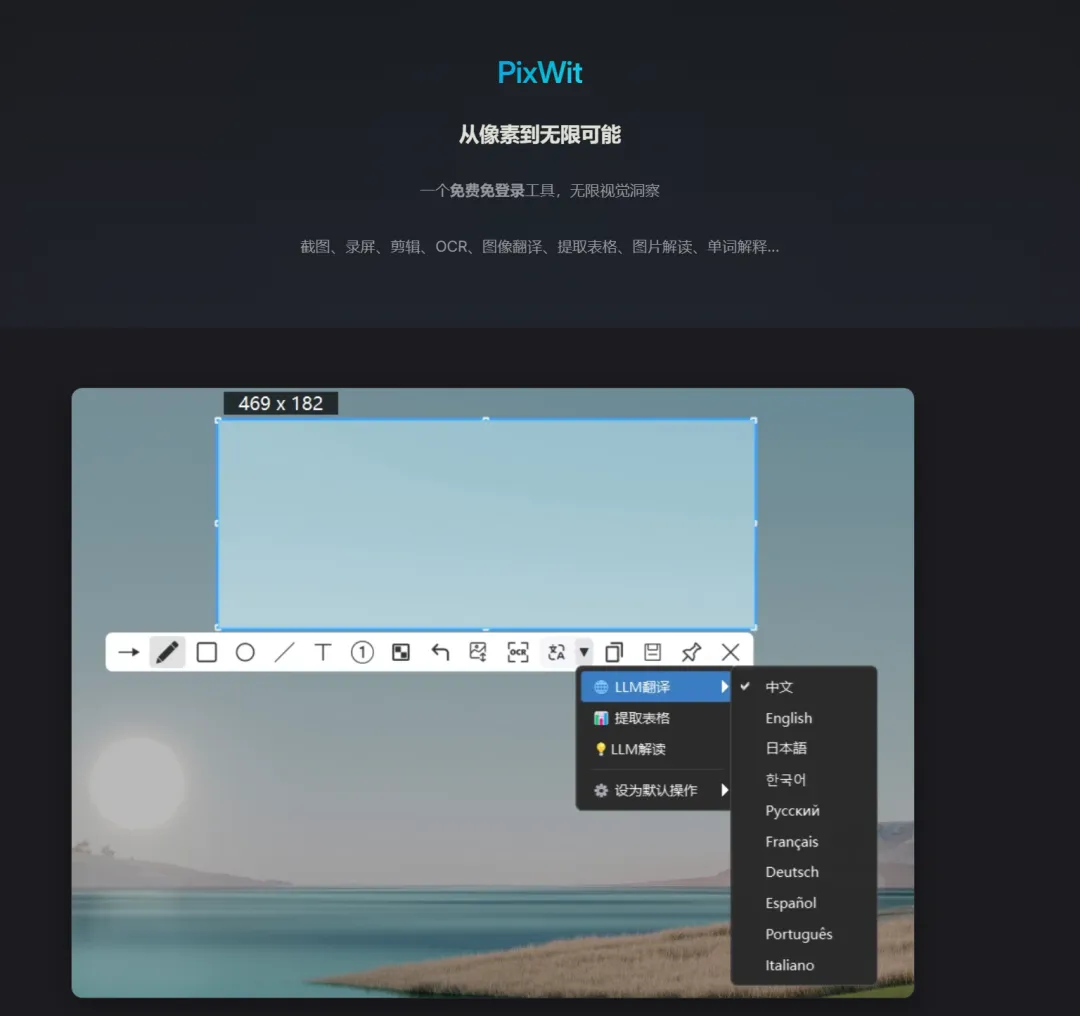 这是一款开源(地址:https://gitee.com/bjs1999/PixWit)的电脑端完全免费、不用登录、绿色免安装的全能视觉工具,截图是它的核心实用功能,还顺带整合了录屏、视频剪辑、图片文字识别、表格提取等超多办公学习能用的功能,操作特别简单,不用复杂设置,新手也能一秒上手。