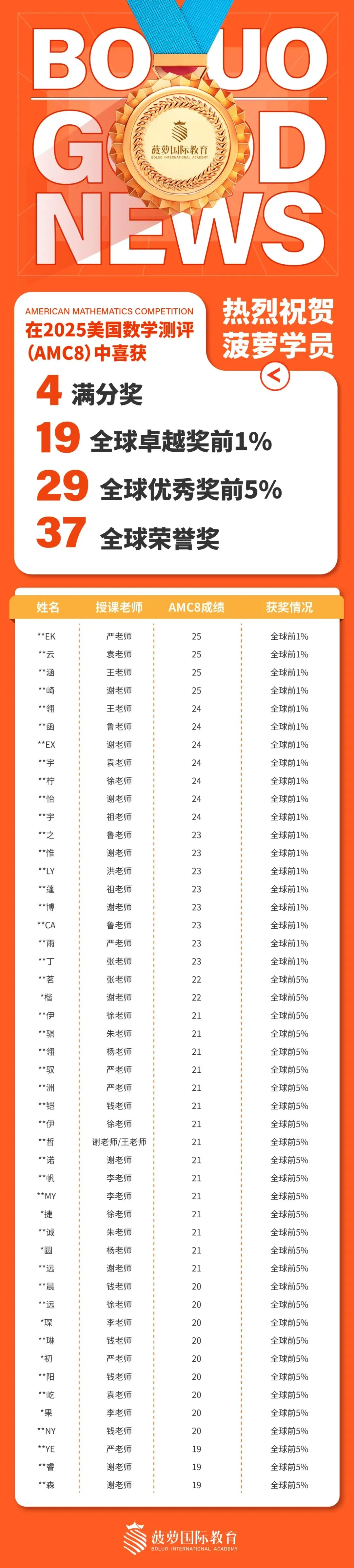 4-6年级才是黄金备考期——四年级冲15分+,五六年级保全球前5%( Honor Roll),争全球前1%(Distinguished Honor Roll)!
