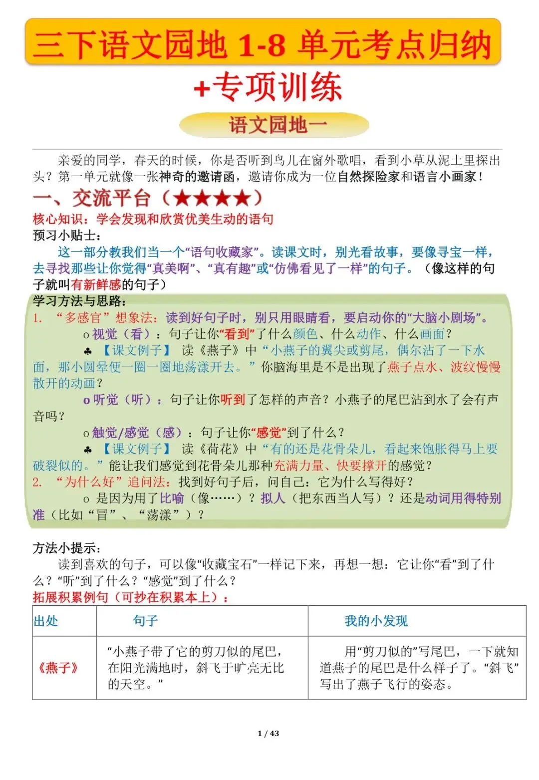 三下语文园地考点梳理拓展版专项训练,电子版可打印