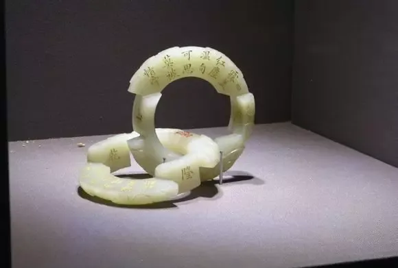 图中这一对白玉环,叫乾隆白玉蚩尤环,玉料温润带点奶色,表面刻着金丝字,看着顺眼,分成两截还各是个完整的圈儿,一撮合又变成一个整体,这手艺是真让人服气,清朝人琢玉讲究极了,讲完美成双,人工打磨不怕碎裂,那些仿制想学结构的都折在这道儿上,爸说看的时候别抠太久,瓷实贵重,压根没人能给你打出来。