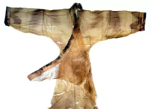 这件挂在展柜里的透明薄衣叫素纱襌衣,西汉的顶级作品,整件衣服把光能透出来,只用了两尺多料,挂手上一点分量都没有,小时候我一度觉得是仙女穿的,听说各路大师合起来都没能织出个一模一样的。