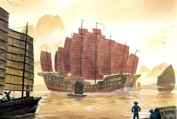远远这艘大船就是郑和宝船,船身宽大四层楼高,能装上千人,船板全是整块巨木,挂十二面大帆,驶过南洋是响当当的本事,现在船厂都找不到那么大材料,这么拼出来的一艘,谁都弄不出来了。
