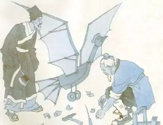 图里这只木头大鸟特有派头,叫鲁班木鸟,据说做完就能飞起来,三天三夜都不落地,画里人手拧着翅膀,传说是憋大招逗娘亲乐呵的,想到就乐,还真没听说谁家哪位木匠复刻出来。