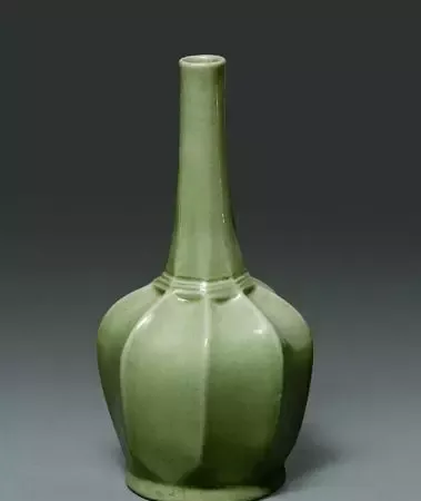 这瓶子翠绿得发亮,叫秘色瓷,民间说越窑的瓷器只有皇上专用,烧瓷釉料配方都是秘密,颜色清透,手感润滑,后人来仿的都差了意思,行家一看就知道,色调拿不下来,做出来也不出那股光。