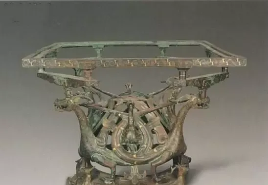 这个复杂到眼花的铜案子,叫战国错金银四龙四凤铜方案,鹿趴底下托着,四龙四凤上下缠绕,纹路都镶着银丝金丝,放现在切割都愁,多少工匠试过,都只整出个形,不敢说比当年的巧思胜半分。