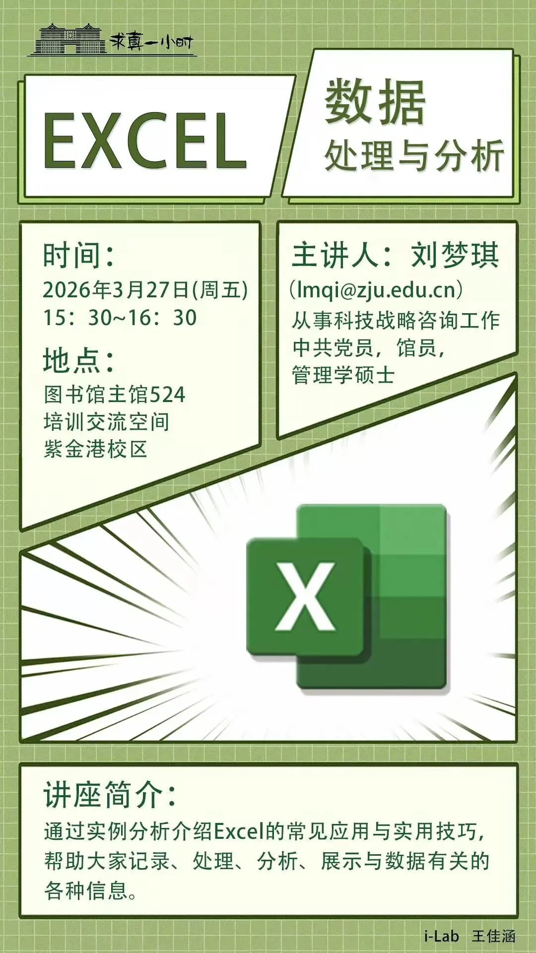 浙大图书馆“求真一小时”|Excel数据处理与分析