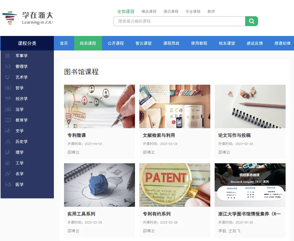 本学期讲座视频会定期上传至学在浙大,登录“学在浙大”平台 — 院系课程 — 图书馆课程,