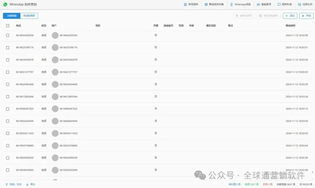 软件还支持从其他主流社媒平台、WhatsApp群组采集数据。采集后的数据需经过严格筛选:
