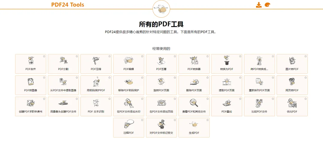 PDF24 Tools 是一款免费易用的 PDF 工具合集,支持网页版和Windows 客户端。集合了近50 个 PDF 文件处理工具,无需登录、打开即用。软件最大的特色就是 100% 免费,还支持离线使用,堪称良心!