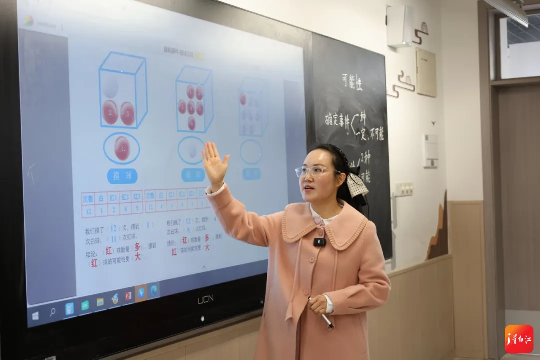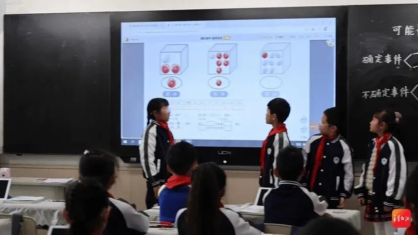 “备课时,我们在国家智慧中小学平台上输入关键词与教学目标,AI数字人可提供教学方案作为参考。课堂上,学生通过点击网络画板、教学平板等方式亲身参与AI引导的互动。”姚利娟将AI定位为“超级助手”,承担机械性数据统计和动态演示等任务,而老师则引导学生进行高阶思维——“为什么实验会呈现这种结果?”“从摸球实验中,你收获了什么?”