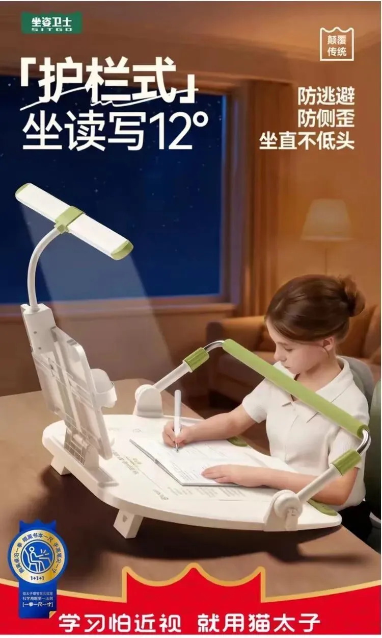 坐姿矫正器、防低头矫正器、阅读架、护眼灯、书夹、自动跟页书签、中性笔、标记荧光笔…
