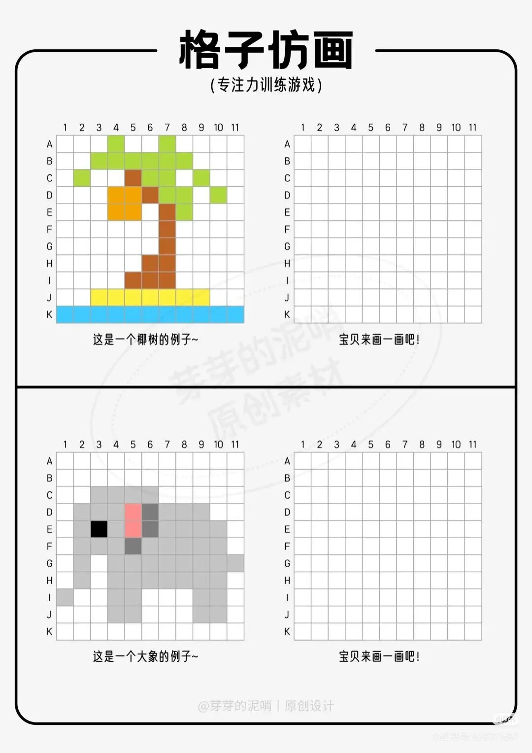 2026幼小衔接专注力训练游戏PDF:格子仿画高清可打印版免费领