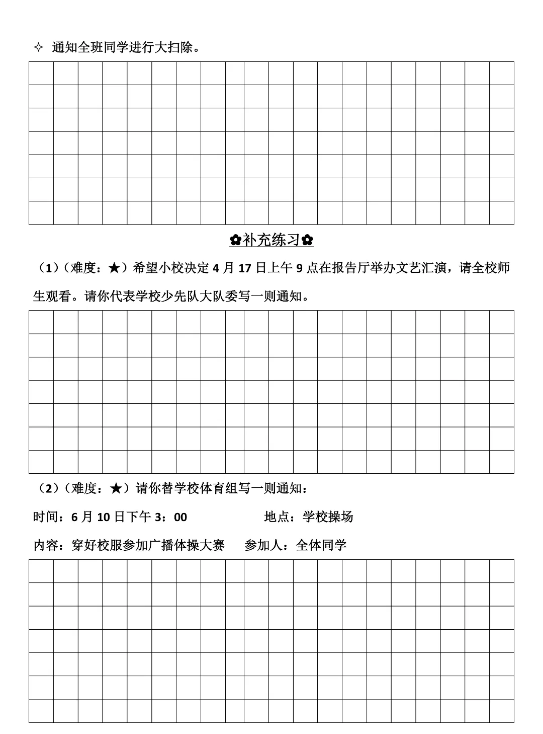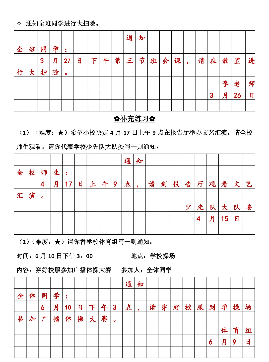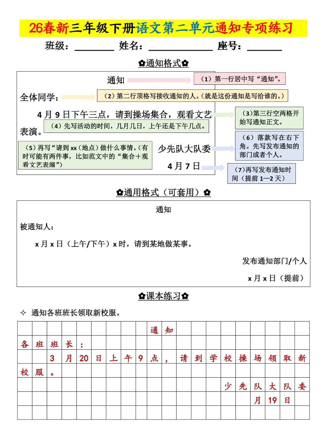 三年级下册语文《通知专项练习》,高清电子版可打印!